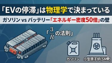 高橋洋一チャンネル要約ソニー・ホンダのEV事業はなぜ停滞するのか?物理学から見る「エネルギー密度の壁」 ソニーとホンダの共同による電気自動車(EV)事業が事実上、足踏み状態にあります。メディアでは「挑戦を止めるな」といった精神論が語られますが、この問題の根底には物理学的な制約が存在します 。 ガソリンとバッテリーの圧倒的な「エネルギー密度」の... 2026.04.19高橋洋一チャンネル要約